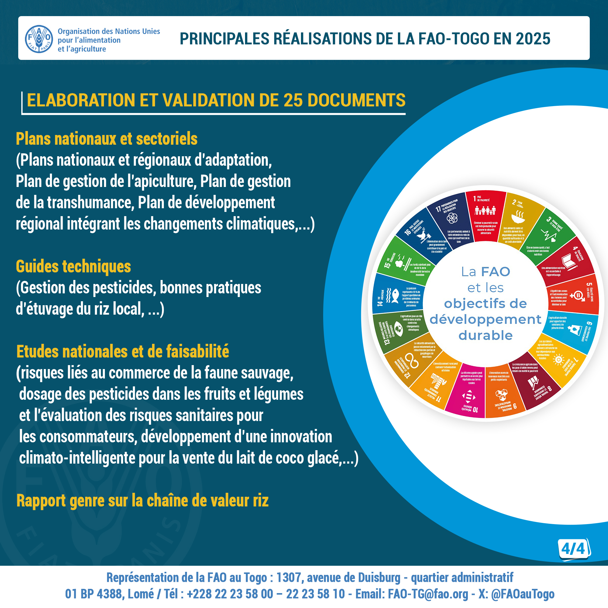 Ces résultats, alignés sur les Objectifs de Développement Durable (ODD), témoignent de l’engagement continu de la FAO pour un Togo où la faim zéro et l’égalité des chances en milieu rural deviennent une réalité tangible.
