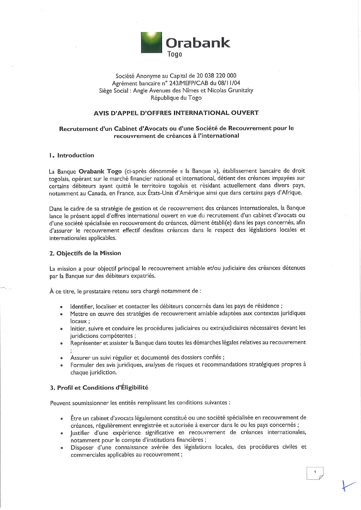 Avis à Manifestation d’Intérêt de la Société de Participation Minière du Burkina Faso (SOPAMIB) Avis à Manifestation d’Intérêt de la Société de Participation Minière du Burkina Faso (SOPAMIB)
