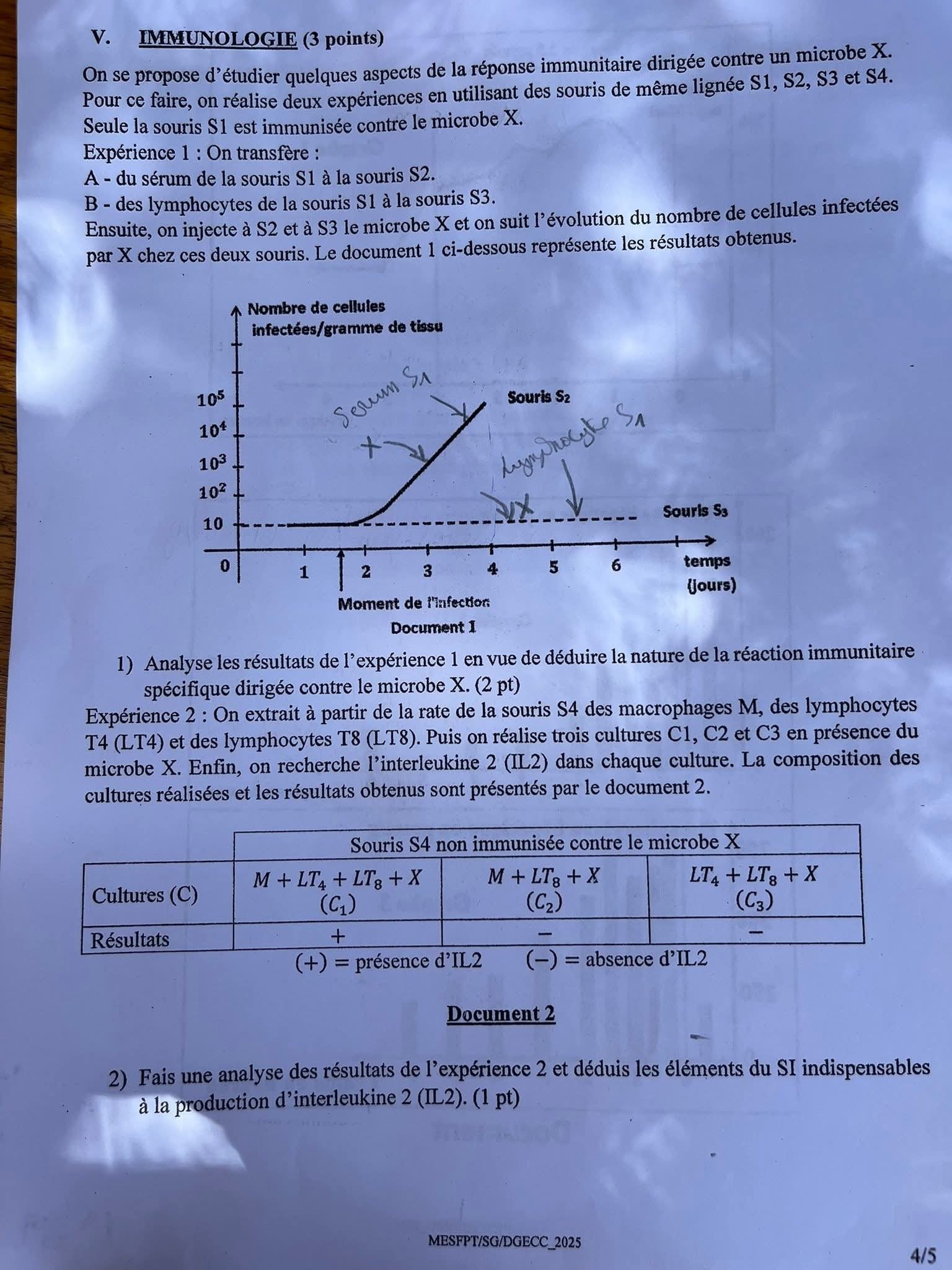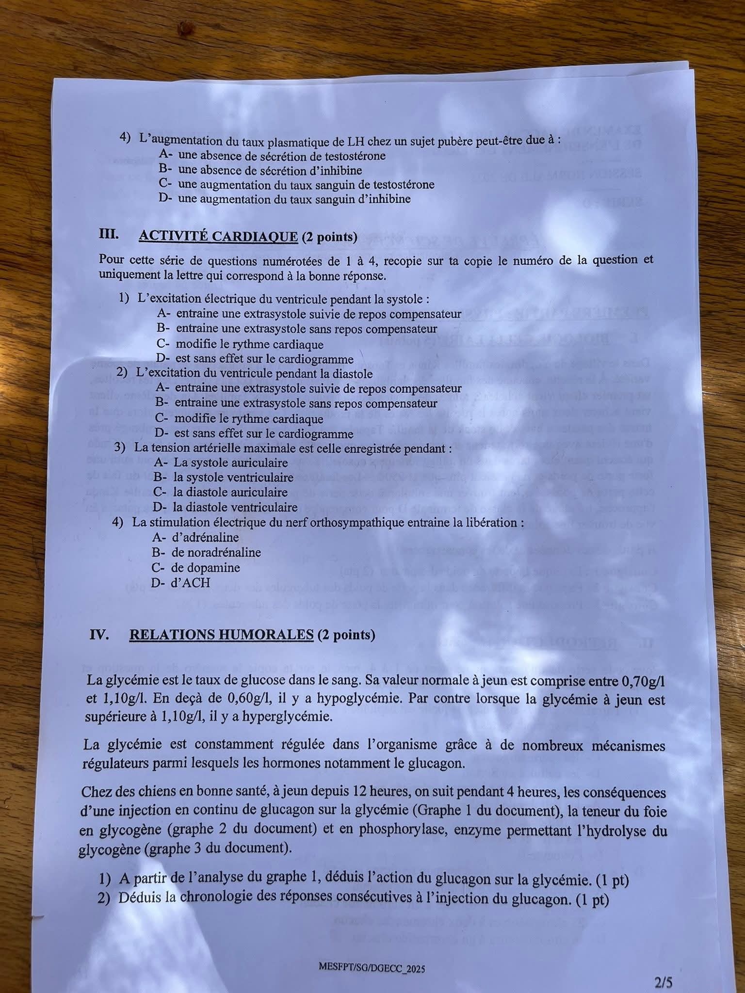 L’épreuve se divisait en deux grandes parties : une section de physiologie, notée sur 14 points, comportant 5 exercices, et une section de génétique, notée sur 6 points.
