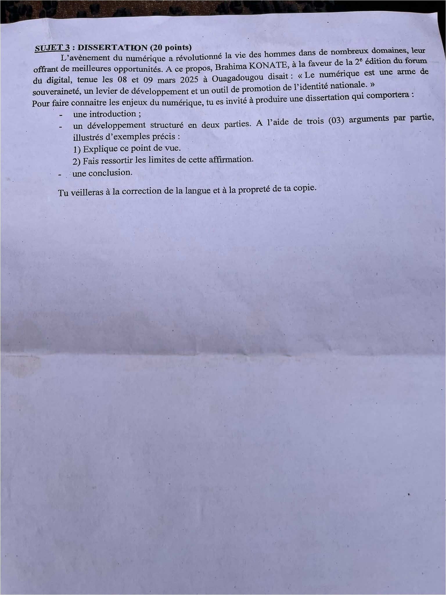 « Pas de tricherie. Quand on ne connaît pas, on ne regarde pas chez son voisin. Restez dignes, restez Burkinabè intègres et honnêtes ! »