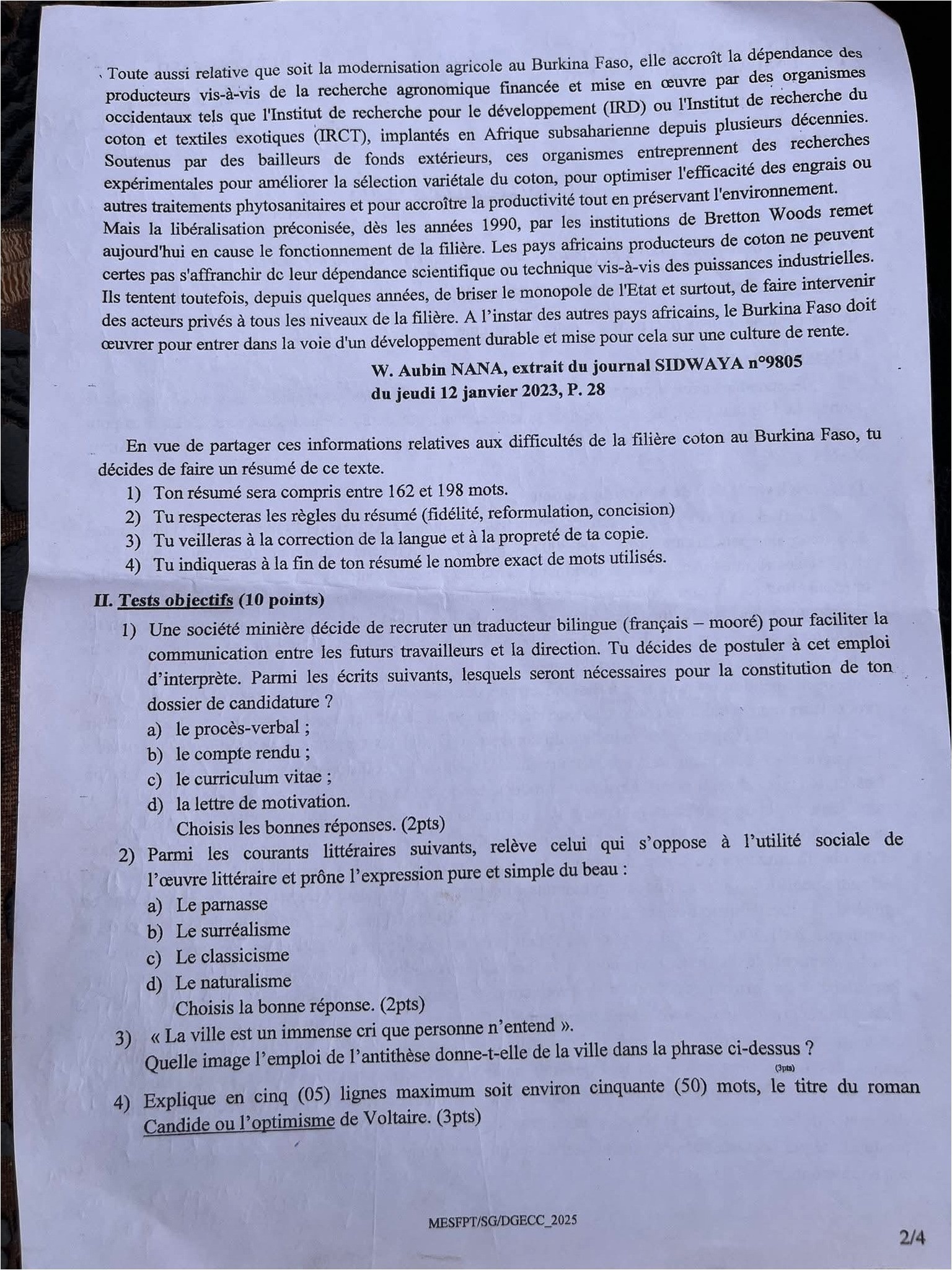 Au Burkina Faso, la session 2025 du BAC a officiellement démarré ce mardi 24 juin avec les épreuves écrites.