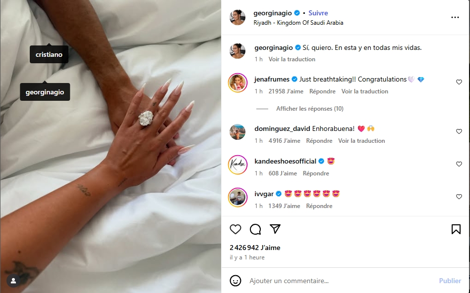 Ça y est ! La mannequin Georgina Rodriguez vient d’annoncer ses fiançailles avec la star du ballon rond, Cristiano Ronaldo.