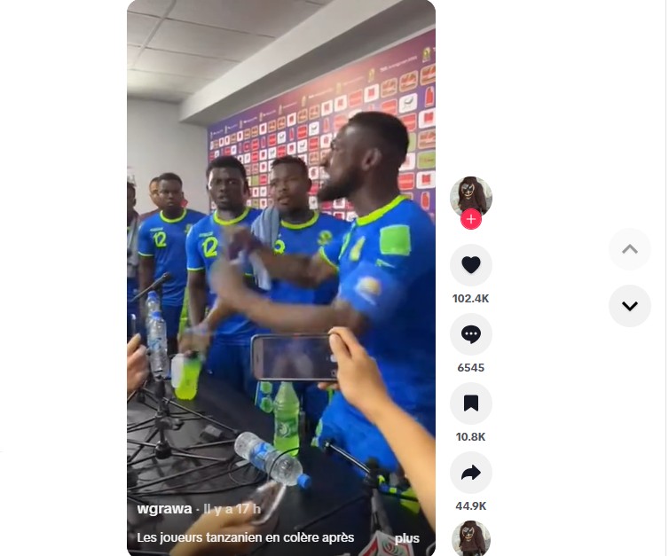 Revenons à présent à la vidéo virale. La séquence a fait plus de 5 millions de vues en moins de 24 heures. Elle est titrée : « Les joueurs tanzaniens en colère après la disqualification face au Maroc ».