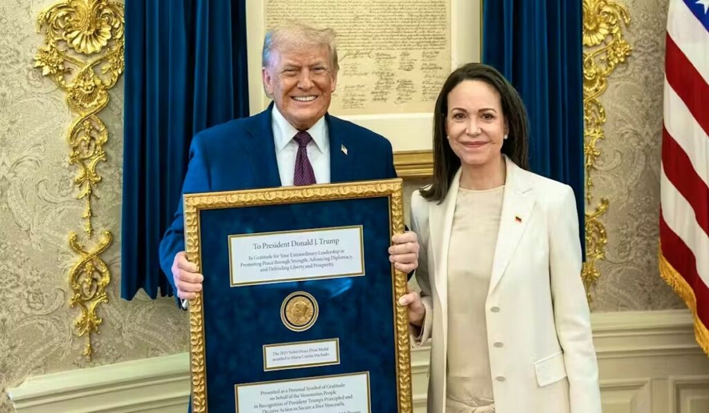 L’opposante vénézuélienne, Maria Corina Machado, a remis la médaille de son prix Nobel de la Paix à Donald Trump, lors d’une rencontre à la Maison Blanche, ce 16 janvier 2026. Un cadeau vivement apprécié par le président américain, qui convoitait ouvertement depuis plusieurs mois cette distinction, estimant avoir mis fin à plusieurs guerres à travers le monde.