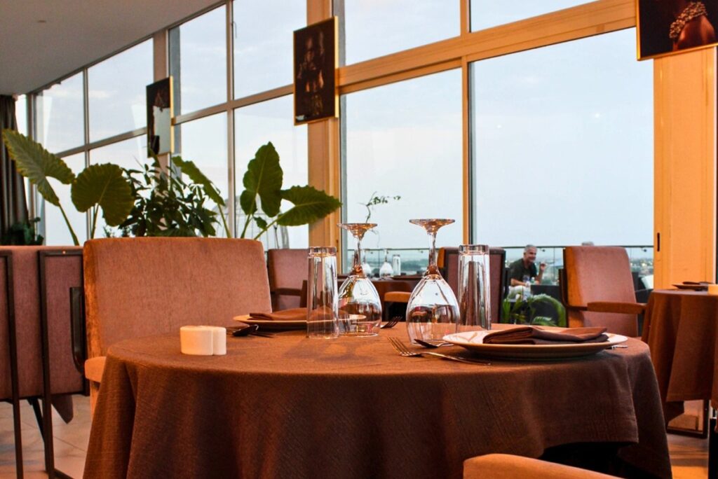À notre arrivée, alors que nous étions à l’extérieur, on nous a fait comprendre que le dîner se faisait uniquement à l’intérieur. Nous avons accepté sans discuter, en précisant que nous dînerions d’abord avant de ressortir profiter de la vue.