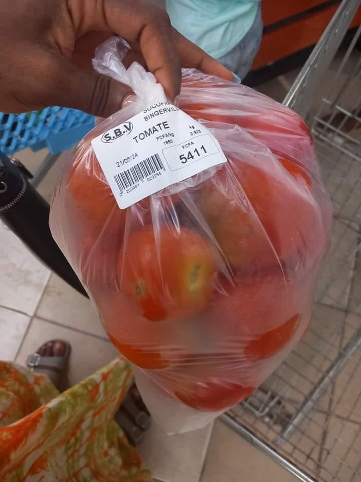 Ce dimanche 26 mai 2024, plusieurs pages ivoiriennes dédiées à l’actualité ont relayé l’image des provisions de tomates d’un internaute. Sur l’image, on observe un montant total de 5 411 FCFA pour 2,92 kilos de tomates, soit, 1850 FCFA le kilo.
