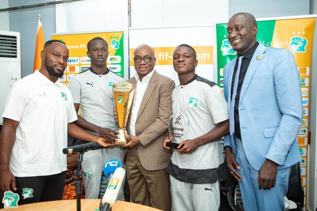 Sacrés champions du prestigieux tournoi « Youth To Pro Tournament », les jeunes ivoiriens ont présenté le trophée au président de la Fédération Ivoirienne de Football (FIF) ce mardi 25 novembre 2025, au siège de l’institution.