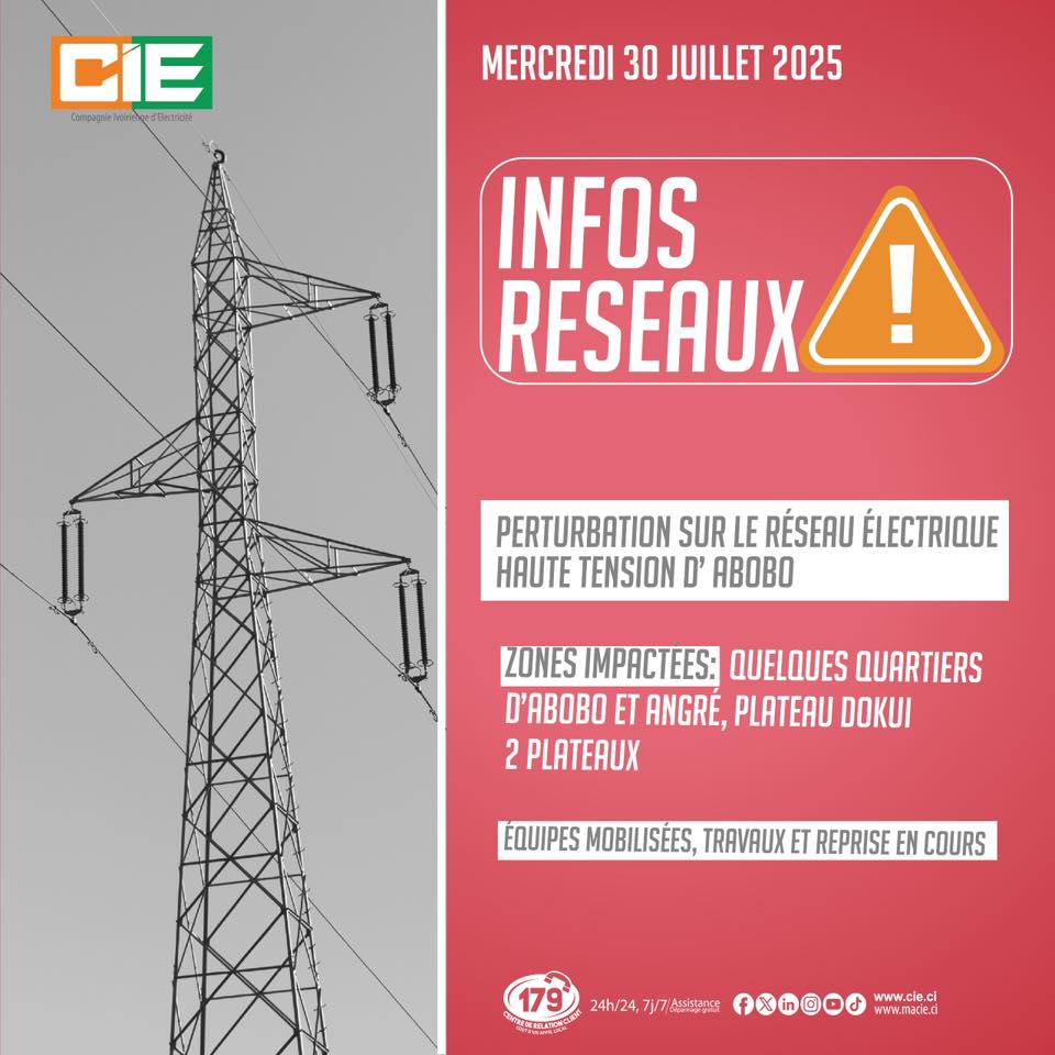Perturbation sur le réseau électrique haute tension à Abobo.