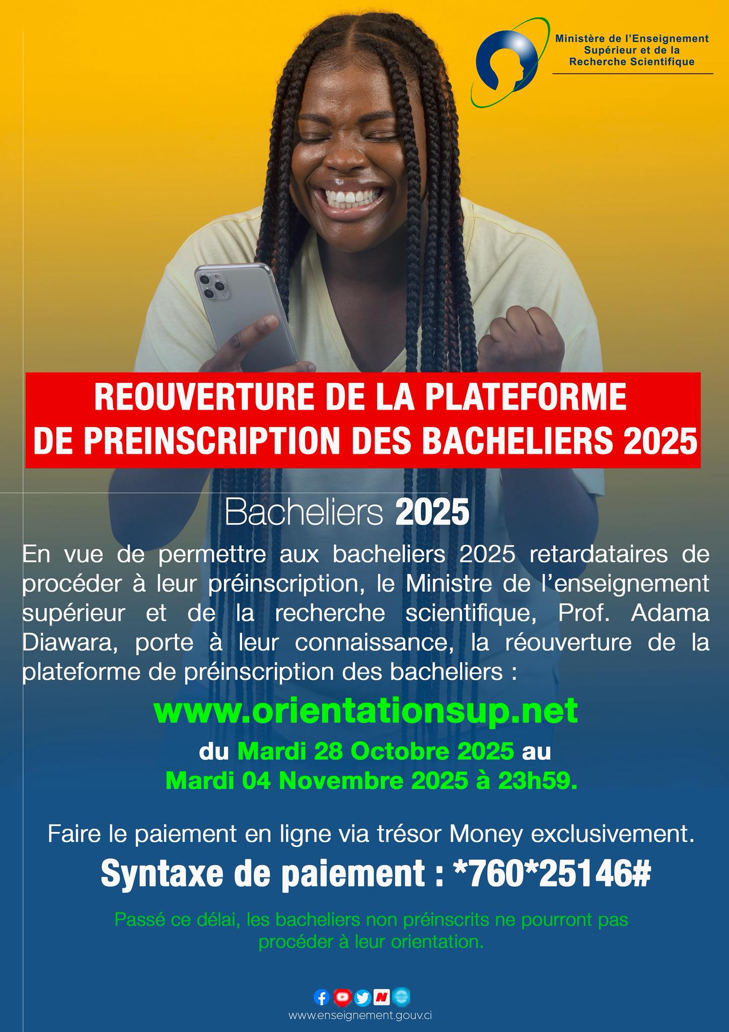 En Côte d’Ivoire, le gouvernement a annoncé la réouverture de la plateforme de préinscription des bacheliers de la session 2025.
