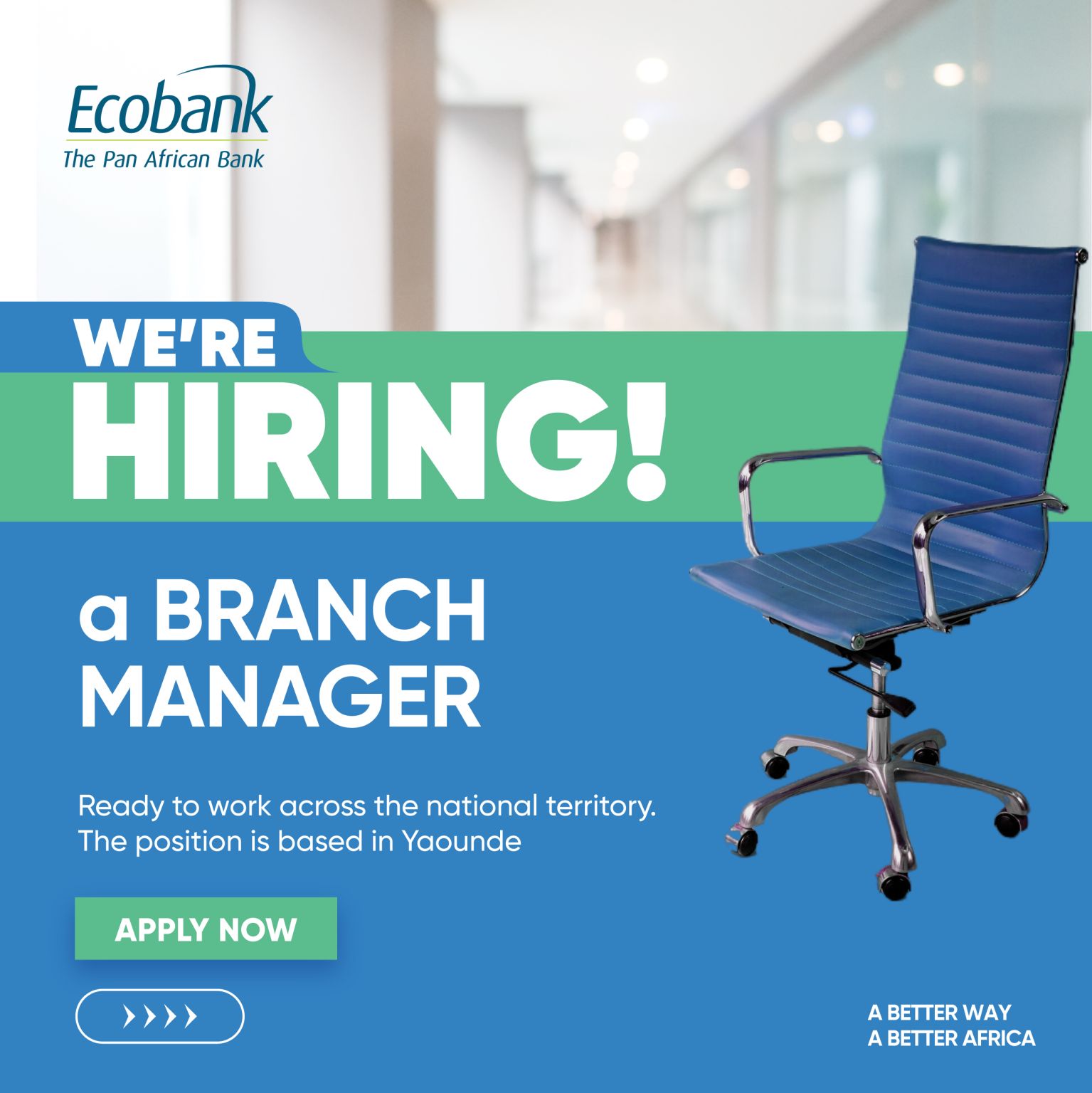 Ecobank Cameroun recrute un directeur d’agence basé à Yaoundé.