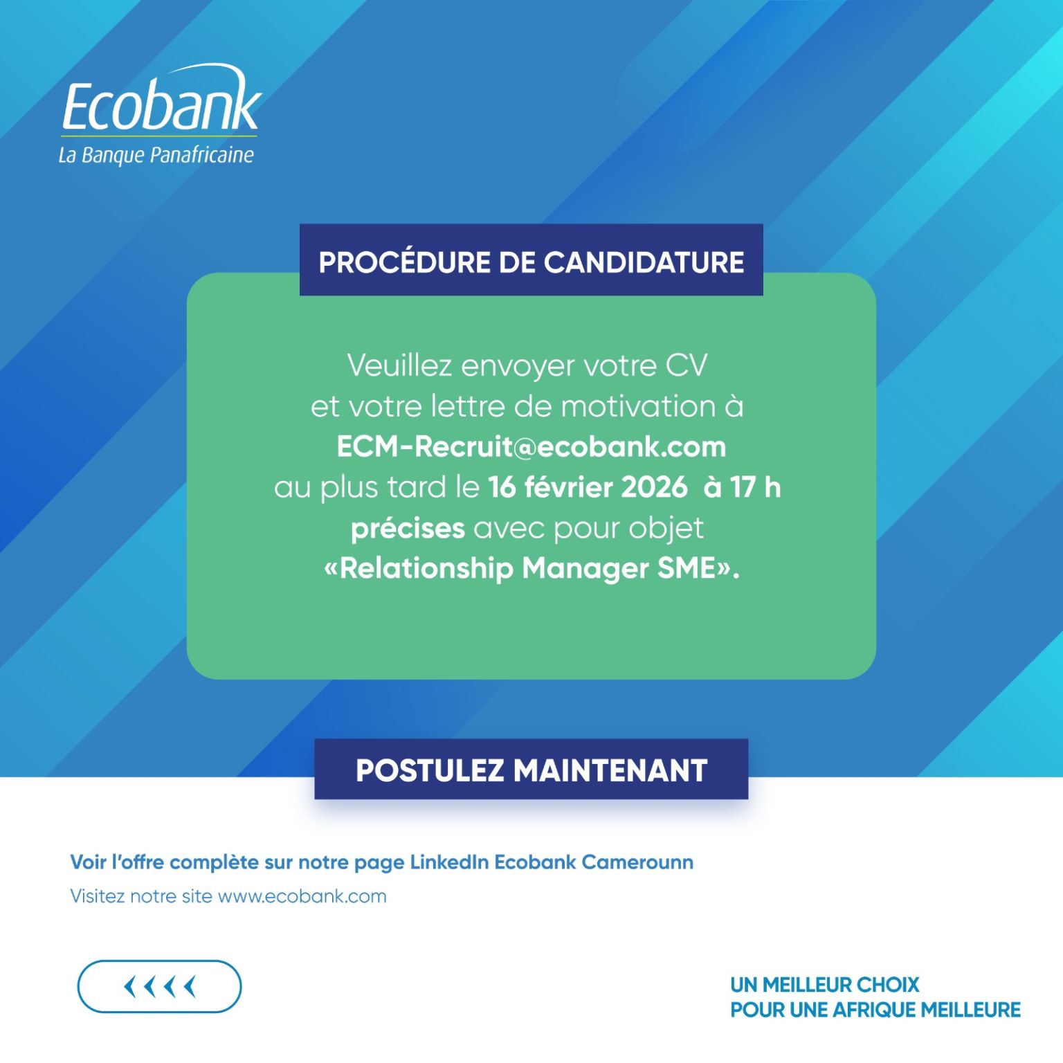 Ecobank Cameroun recrute !