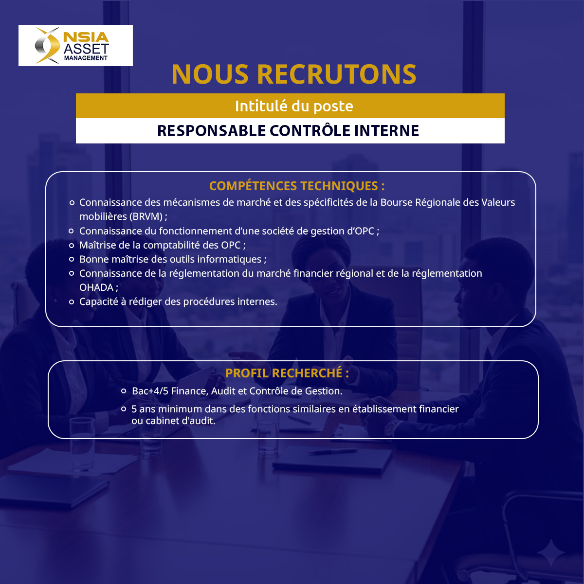 NSIA AM recrute pour les postes suivants :