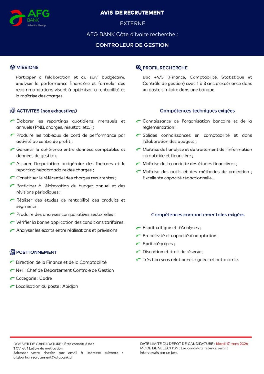 Poste 1 : Contrôleur de Gestion