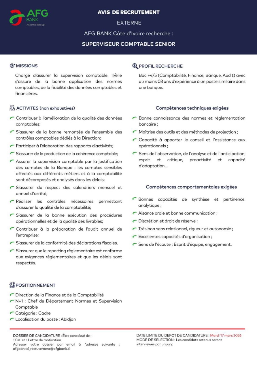 Poste 2 : Superviseur comptable senior