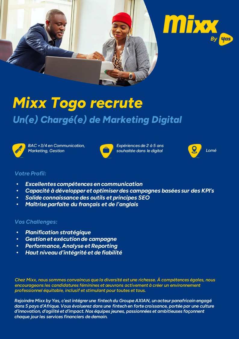 YAS Togo offre 3 opportunités de recrutement à la date du 6 mars 2026. Les détails sur les postes se trouvent sur les images ci-dessous.