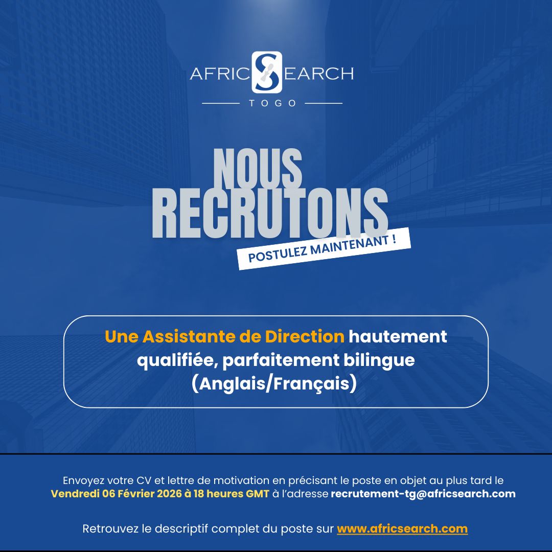 Le cabinet AfricSearch Togo recrute une assistante de direction bilingue jusqu’en février 2026.