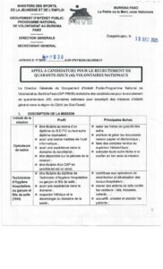 APPEL A CANDIDATURE POUR LE RECRUTEMENT DE QUARANTE-DEUX (42) VOLONTAIRES NATIONAUX BURKINA FASO