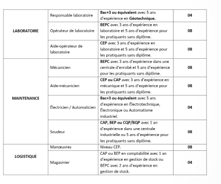 Objet du message : demande de candidature au poste de Magasinier pour le compte de la centrale à enrobé ;