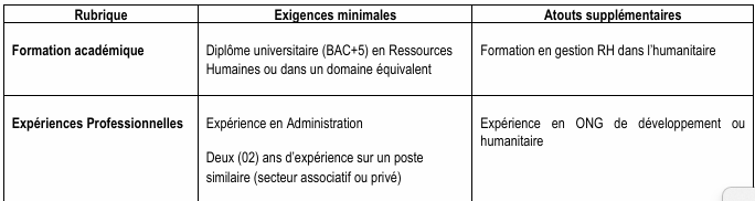 • Développer et entretenir également des relations avec des institutions partenaires sur des questions liées à l’administration et aux ressources humaines, notamment dans le cadre du forum de coordination des ONG.