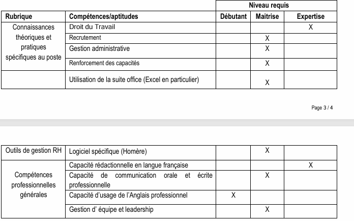 • Politique RH: Il/Elle est responsable du développement et de la mise à jour du ROI et des procédures et outils y afférents, et est responsable de sa bonne application au niveau de la mission, tout en respectant le cadre juridique du pays d’intervention en la matière.