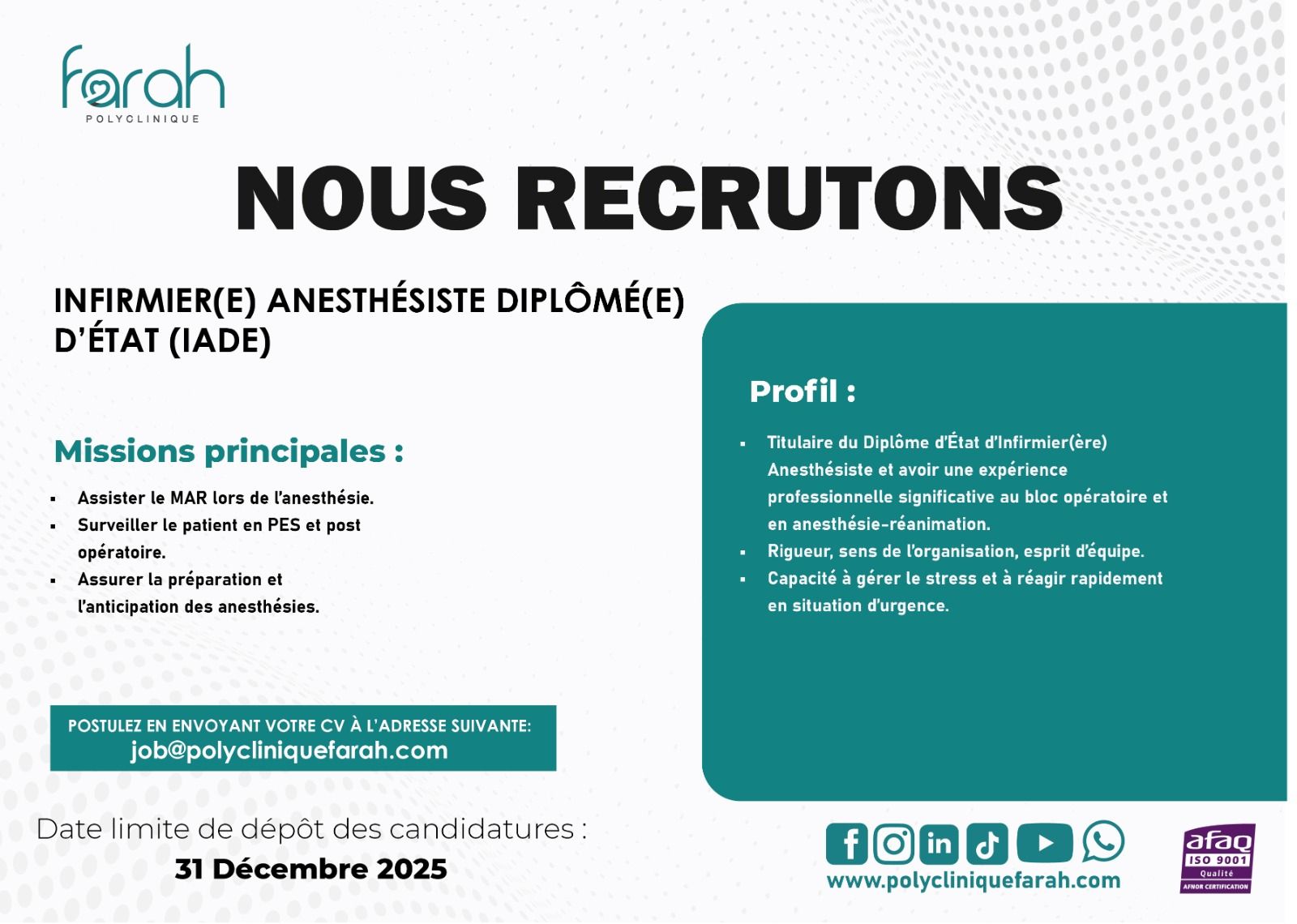 3- Infirmier (e) anesthésiste diplômé (e) d’Etat