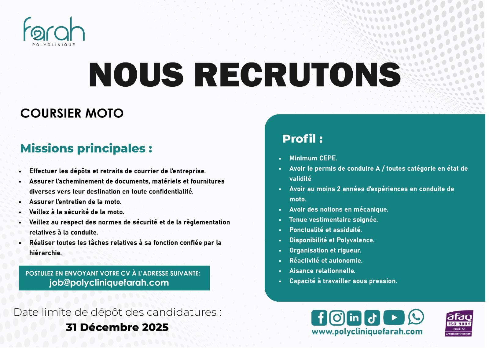 Voici ci-dessous, les profils et les missions pour chaque poste.