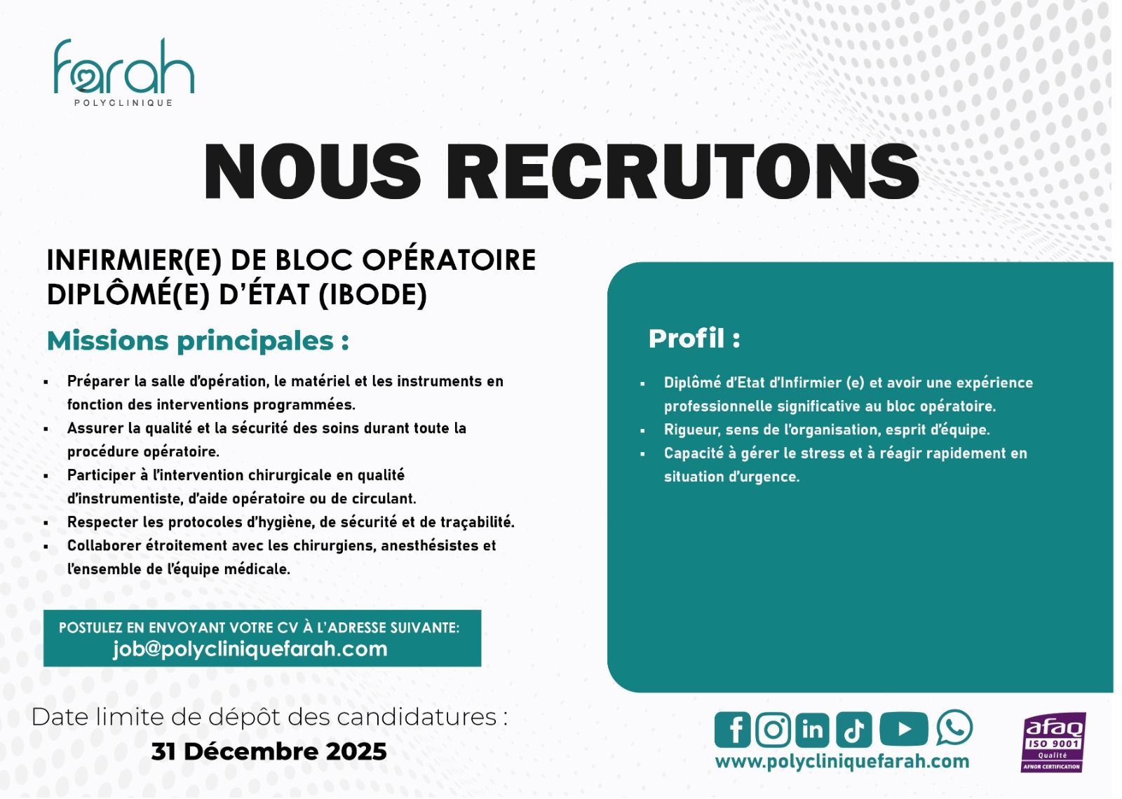 4- Infirmier (e) de Bloc opératoire diplômé (e) d’Etat