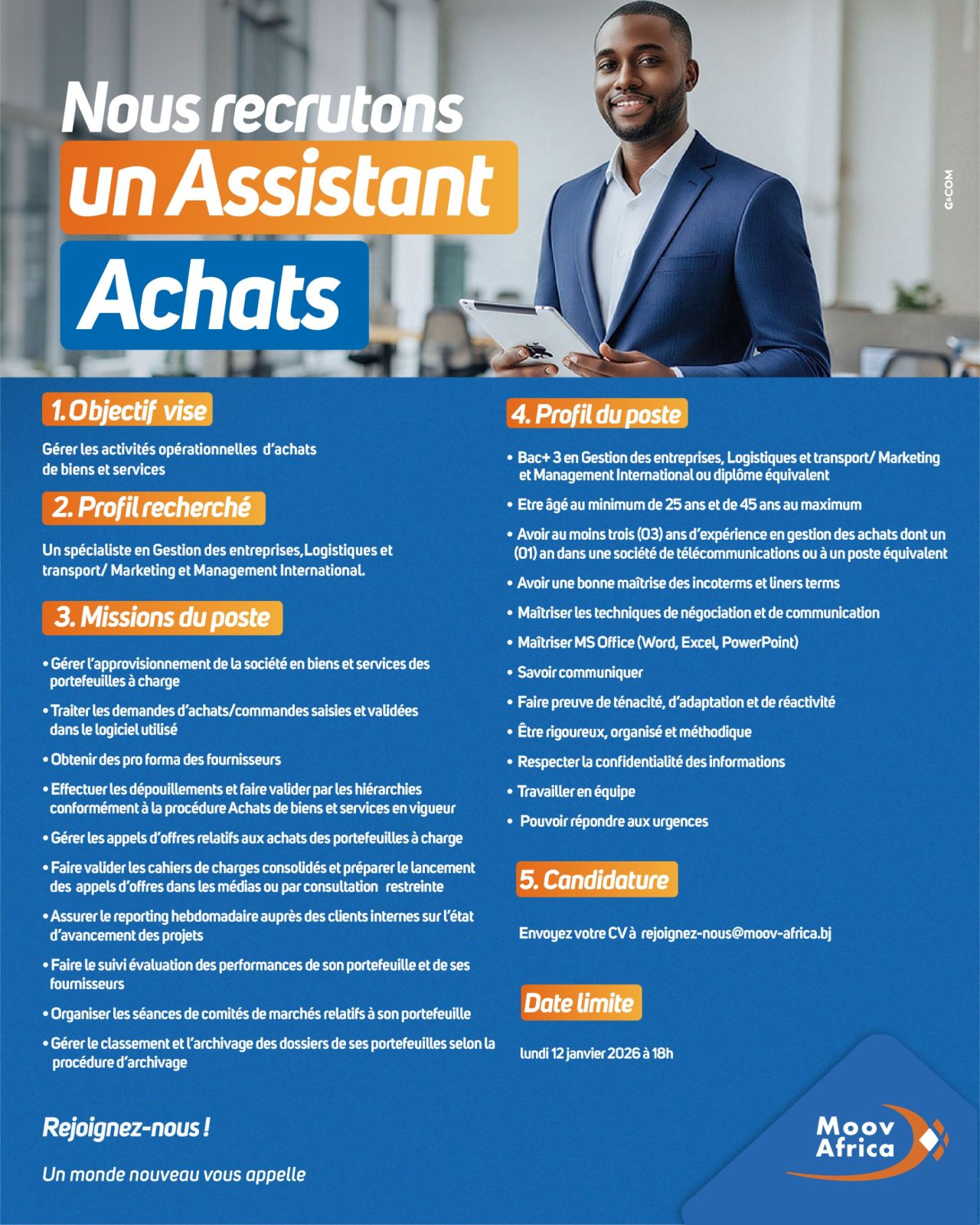 Vous correspondez au profil ? Postulez dès maintenant en envoyant votre CV à [email protected] avant le 12 janvier 2026 à 18h.