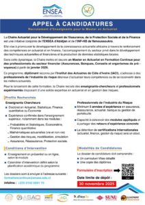 La Chaire Actuariat, pour le Développement de l’Assurance, de la Protection Sociale et de la Finance une initiative conjointe de l’ENSEA d’Abidjan et de l’INP-HB de Yamoussoukro, lance un appel à candidatures pour le recrutement d’enseignants pour son Master en Actuariat dans le cadre du programme de Formation Continue.