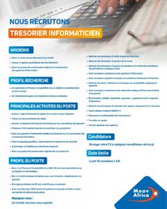 - Avoir au moins deux (02) années d’expérience à un poste similaire et dans une société de télécommunications.