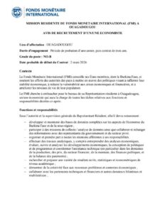 Le FMI cherche à embaucher pour le bureau de sa Représentation résidente à Ouagadougou, 𝘂𝗻/𝘂𝗻𝗲 𝗲́𝗰𝗼𝗻𝗼𝗺𝗶𝘀𝘁𝗲.