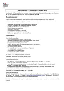 L’ambassade de France à Cotonou recrute un (01) Agent de sécurité