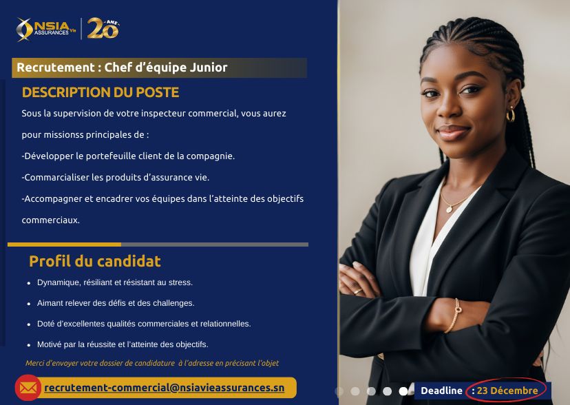 – Une opportunité idéale pour évoluer, relever des challenges et bâtir une carrière solide dans l’assurance vie.