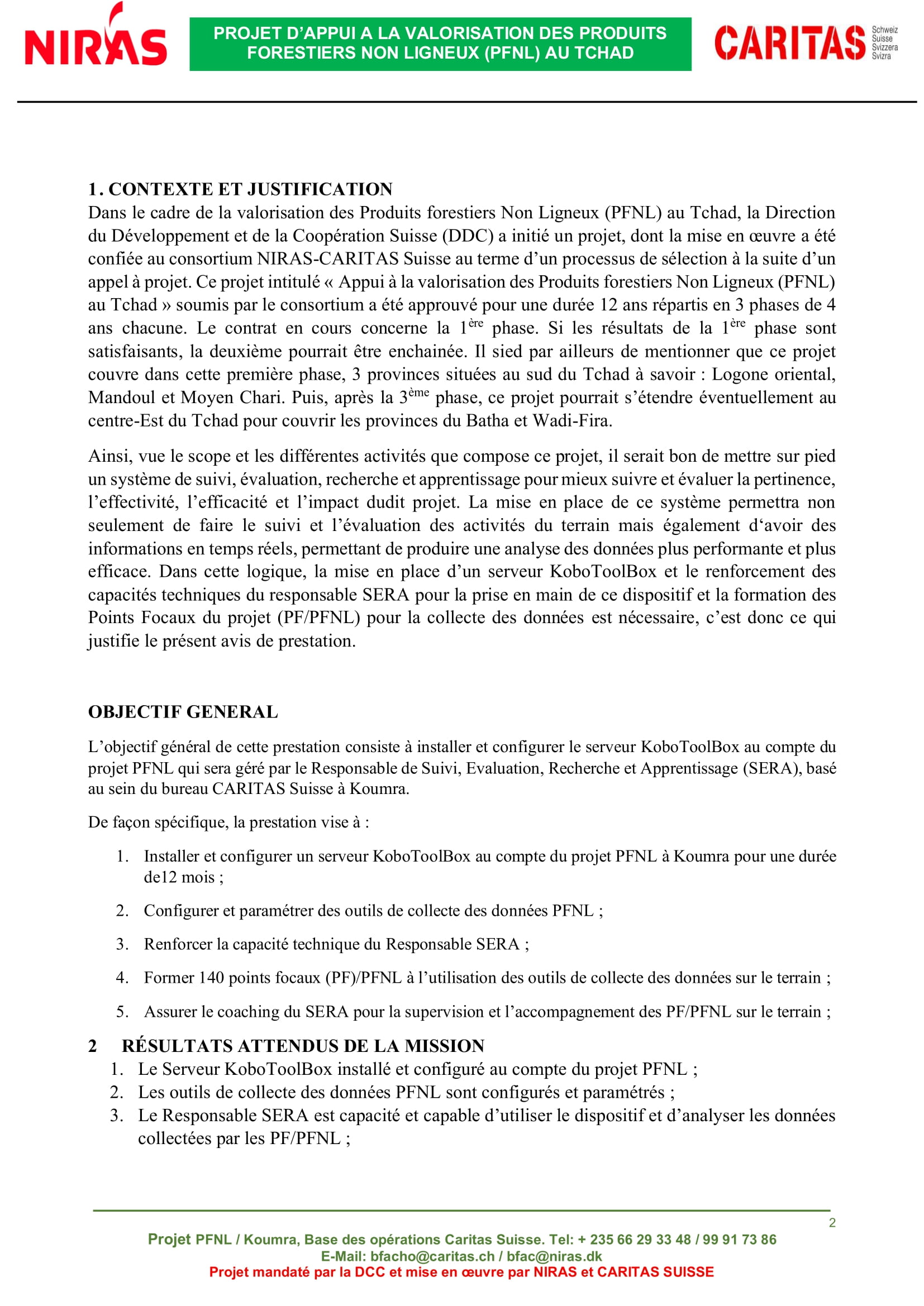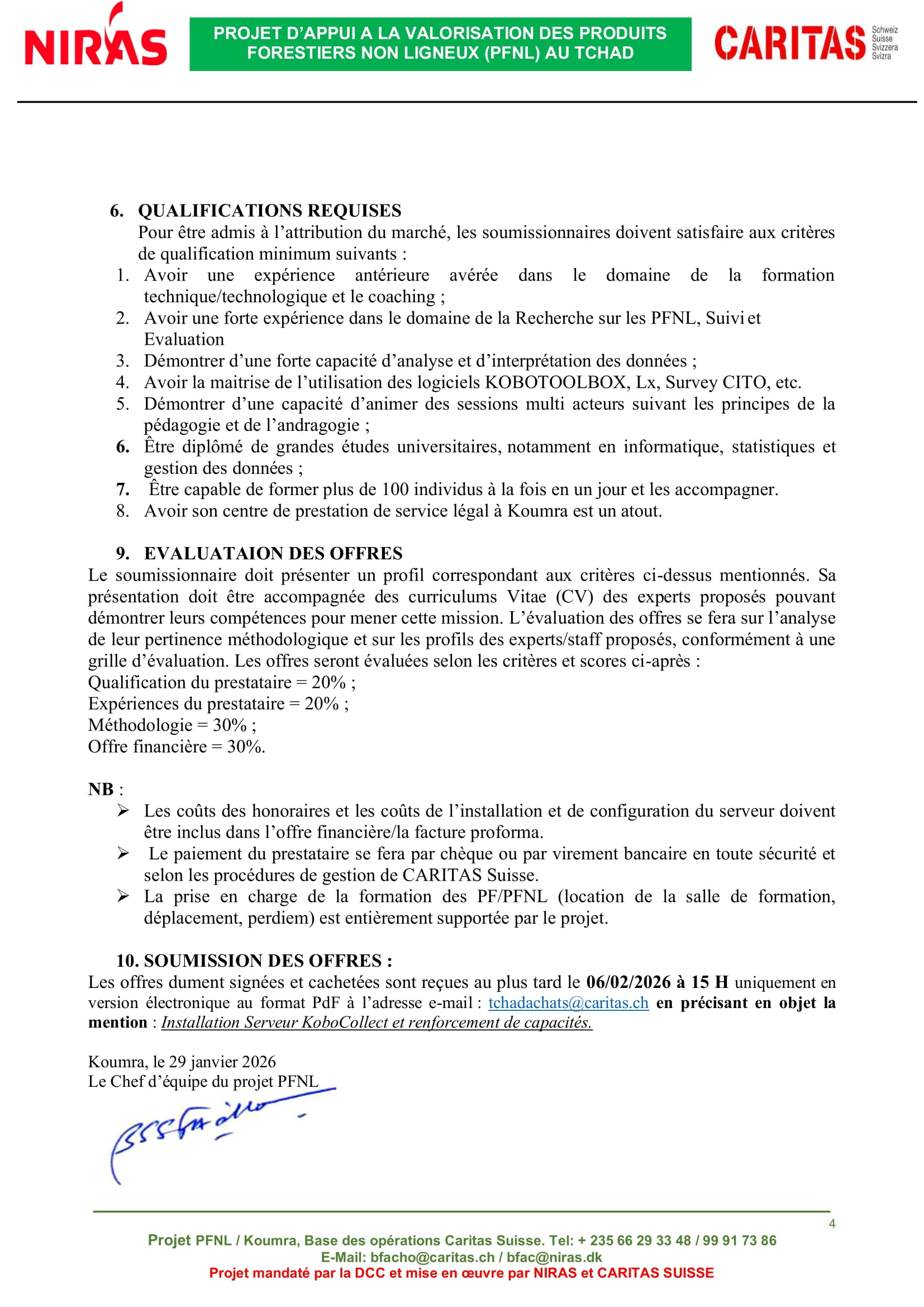 L’ONG internationale CARITAS SUISSE au TCHAD recrute un prestataire pour l’installation et la configuration du serveur KoboToolBox.