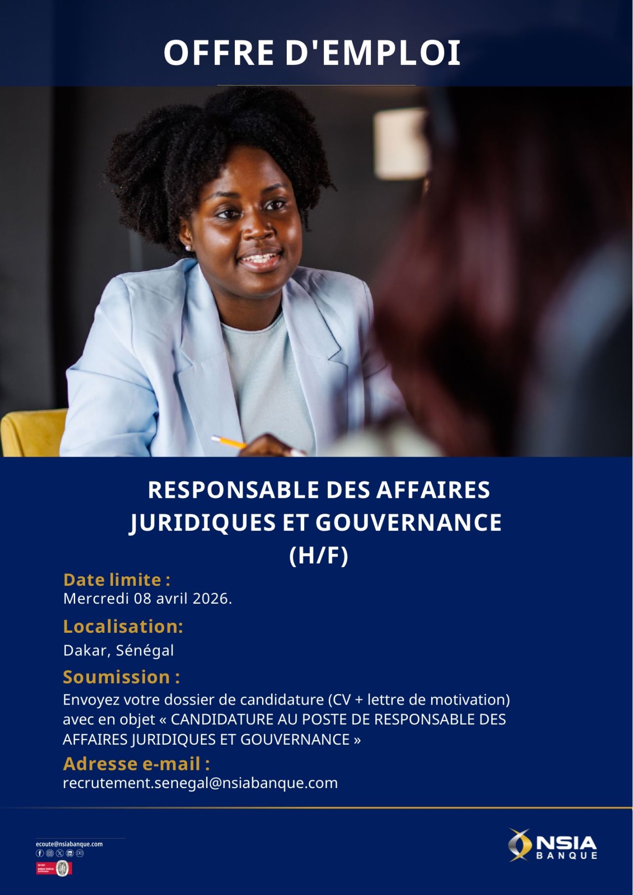 Nous recrutons un(e) Responsable des Affaires Juridiques et Gouvernance.