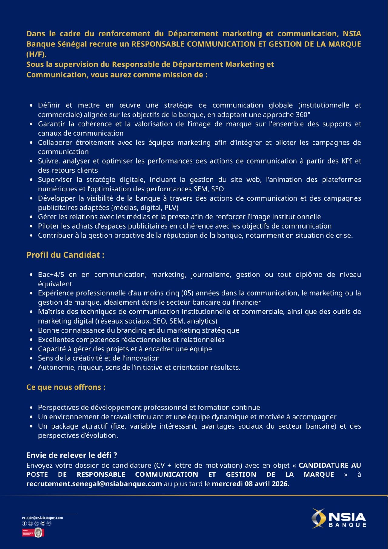 (Objet : RESPONSABLE COMMUNICATION ET GESTION DE LA MARQUE)