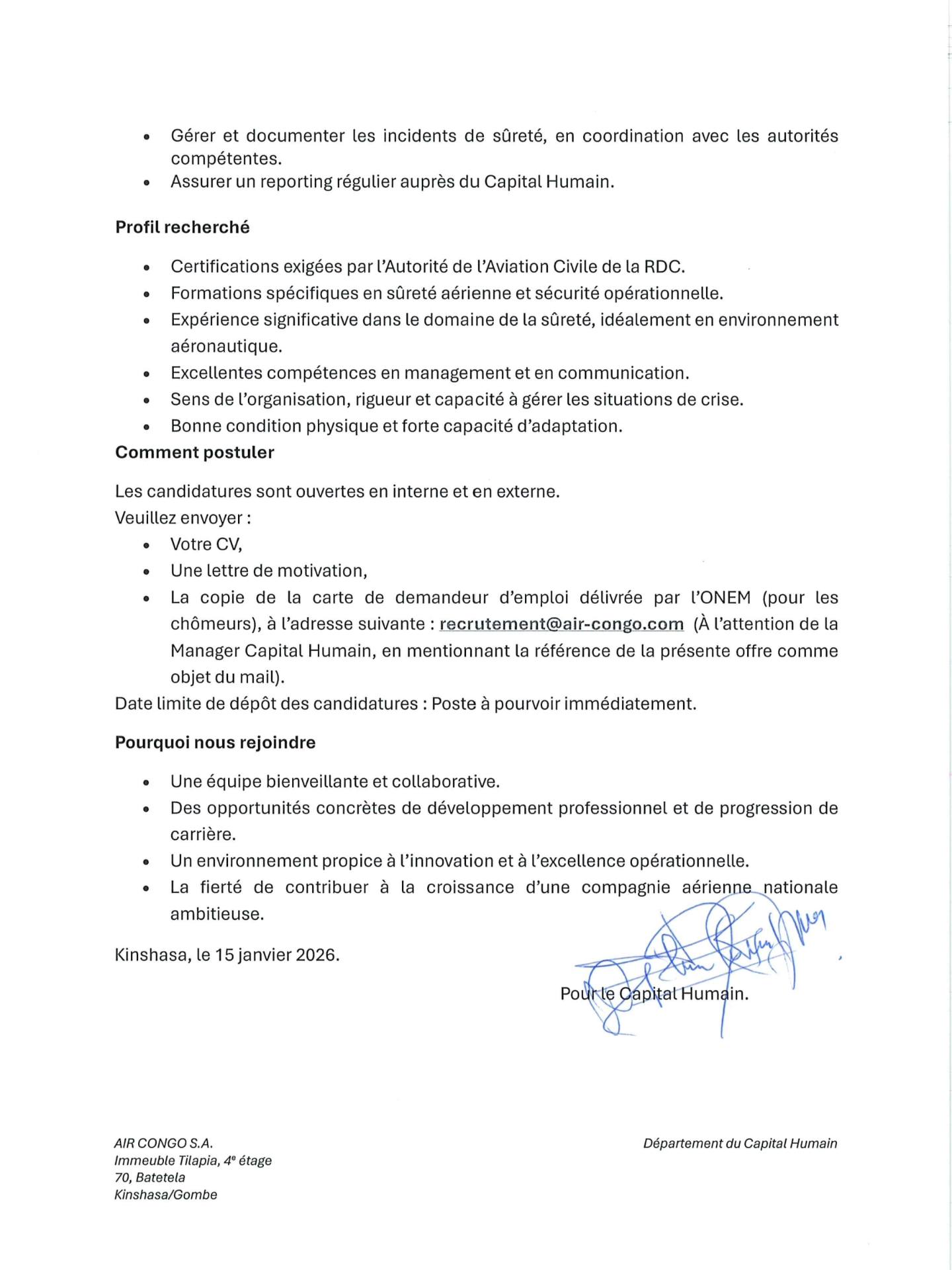 Kinshasa (Aéroport de N’Djili & bureaux) | CDD | Prise de poste immédiate