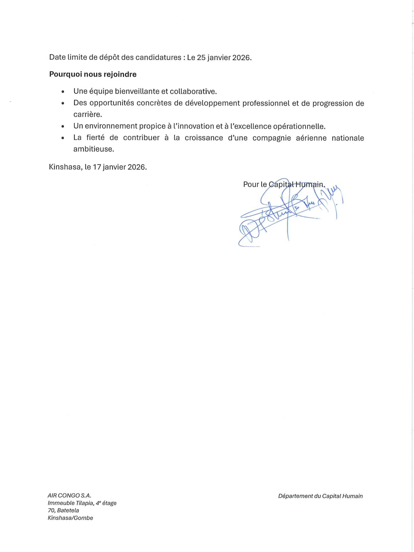Rejoignez-nous et contribuez à façonner l’avenir de l’aviation en République Démocratique du Congo.