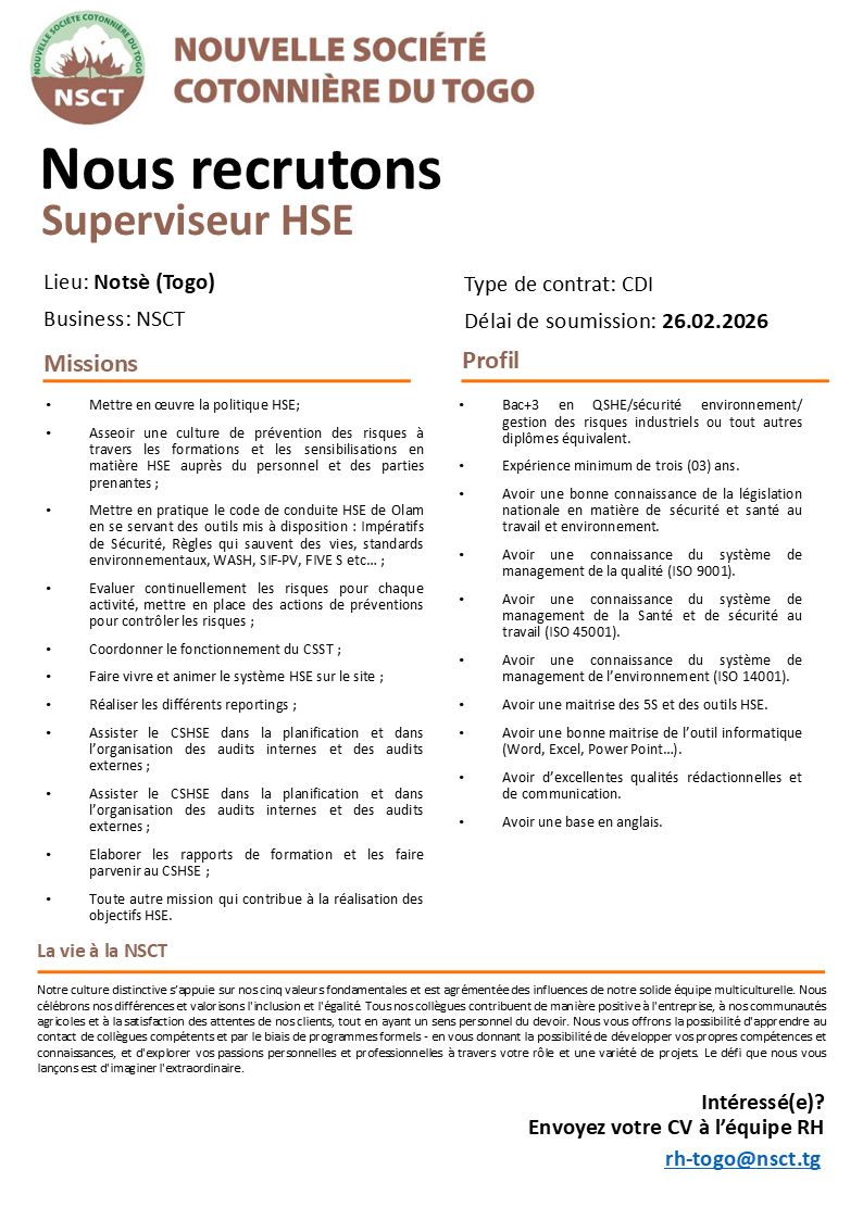 NOUVELLE SOCIÉTÉ COTONNIÈRE DU TOGO NSCT