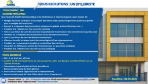 Le FIDRA recrute un (01) Juriste