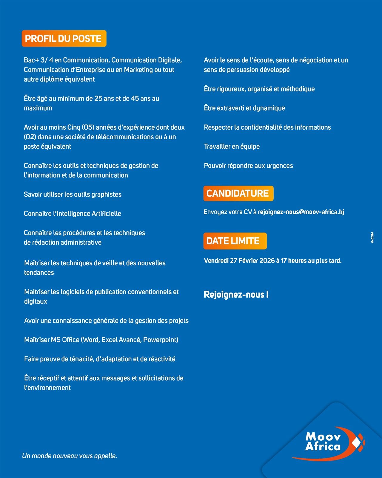 AVIS DE RECRUTEMENT À L’ONG DE DEVELOPPEMENT EDUCO (19 février 2026)