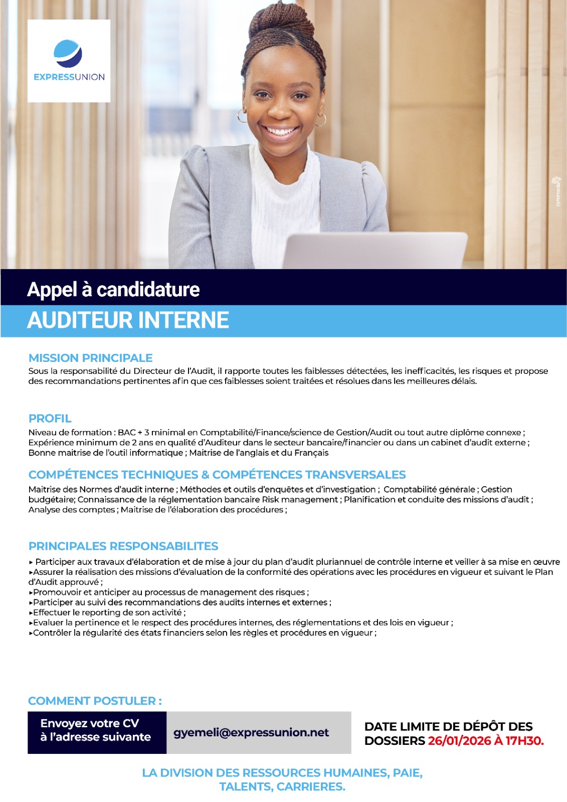 - Bac +2 minimum en Contrôle et Audit / Comptabilité / Finance / Sciences de gestion ou tout autre diplôme connexe