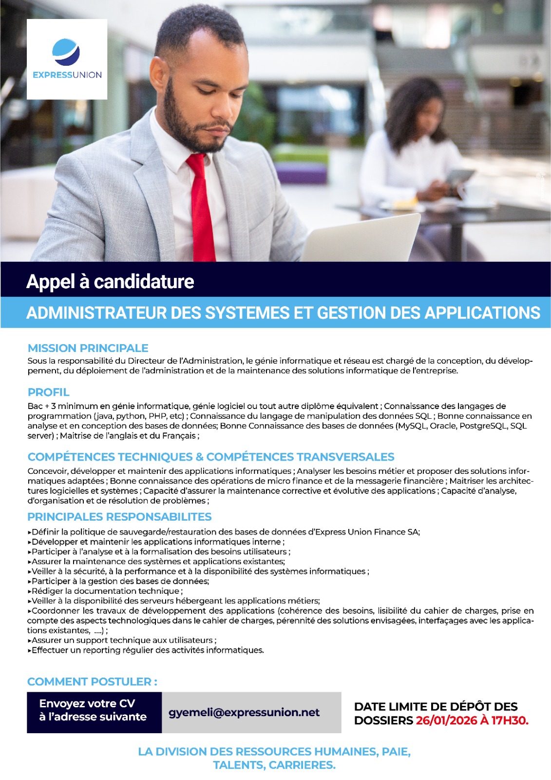 Sous la responsabilité du Directeur de l’Administration, il/elle est en charge du recrutement, de la formation et de l’animation quotidienne des activités liées à la gestion des ressources humaines.