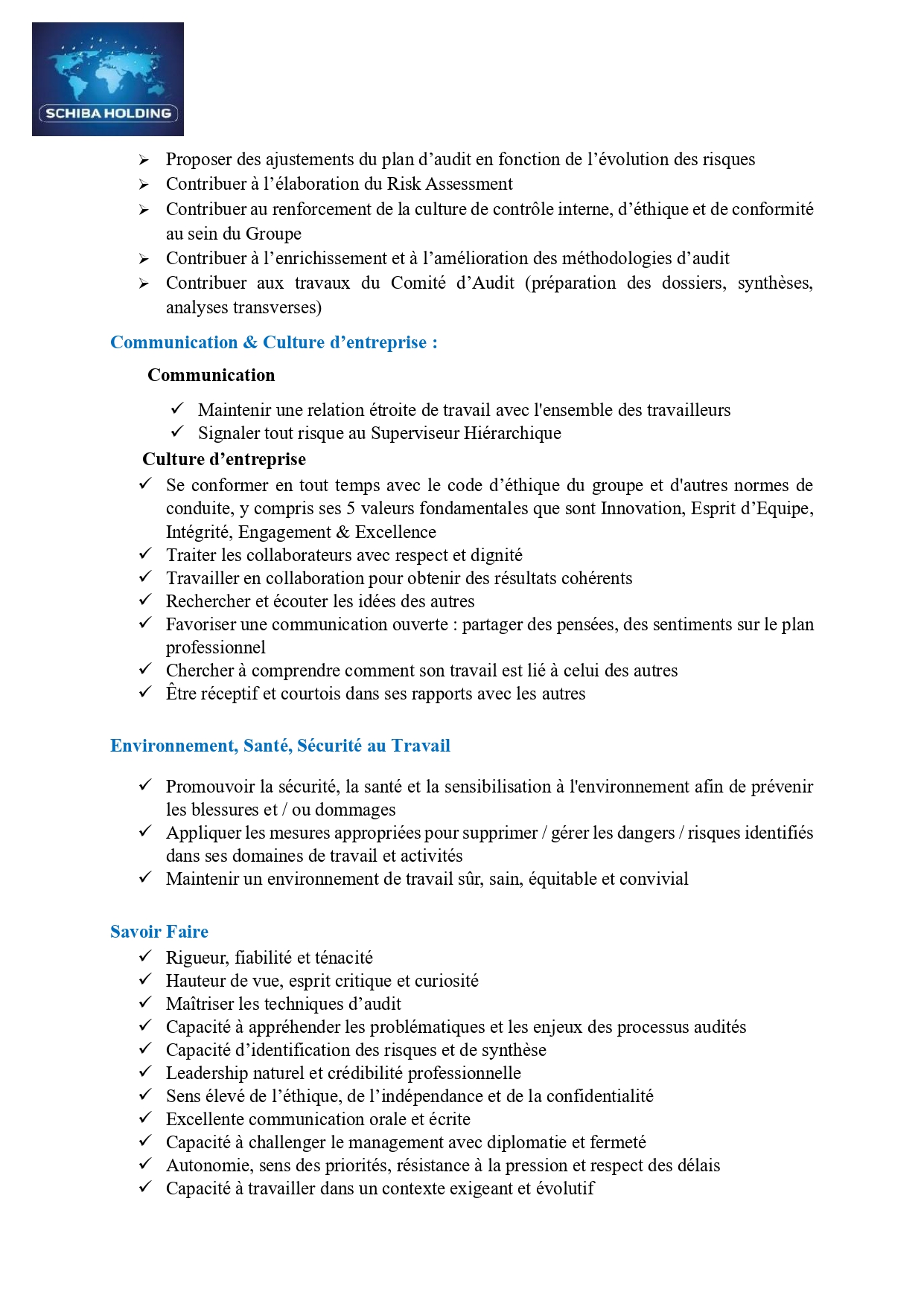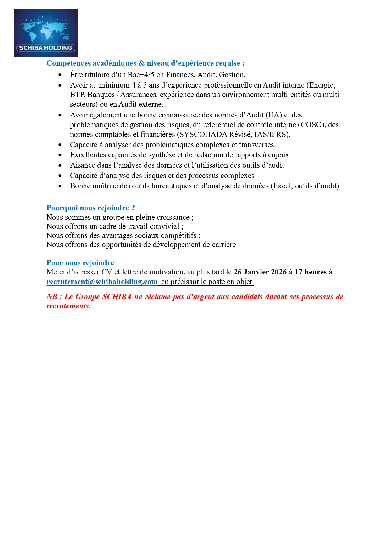 Poste à pourvoir : AUDITEUR INTERNE SENIOR