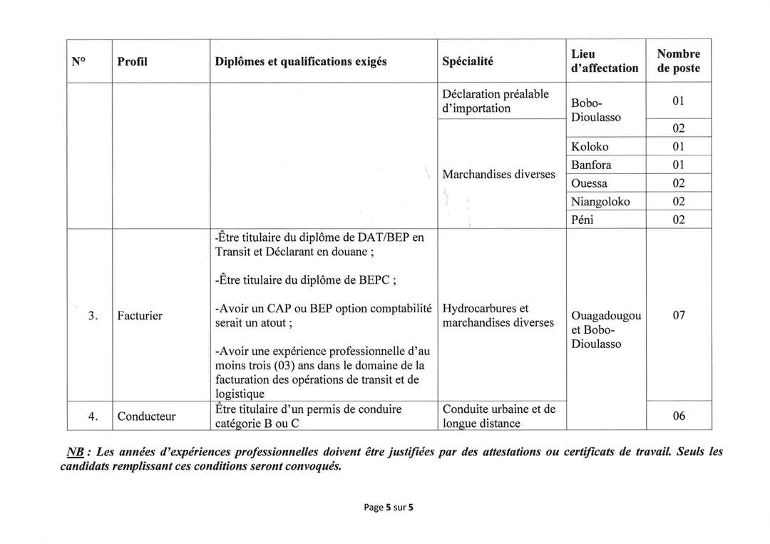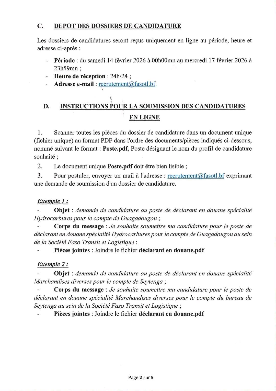AVIS DE RECRUTEMENT à la société d’État Faso Transit et Logistique – 63 Postes