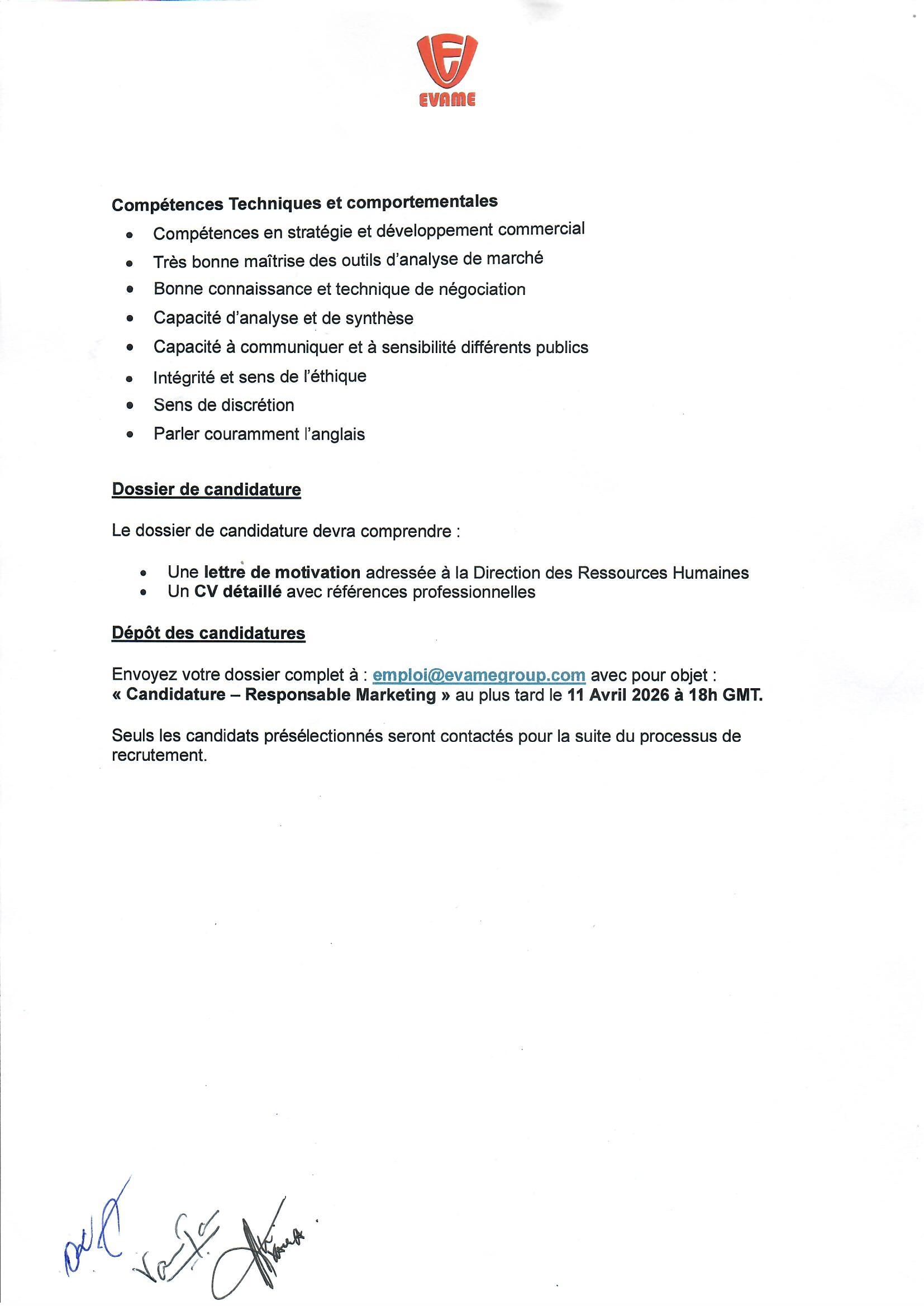 TOUS LES DÉTAILS DE L’OFFRE D’EMPLOI POUR LE POSTE DE Responsable Marketing au GROUPE EVAME SA