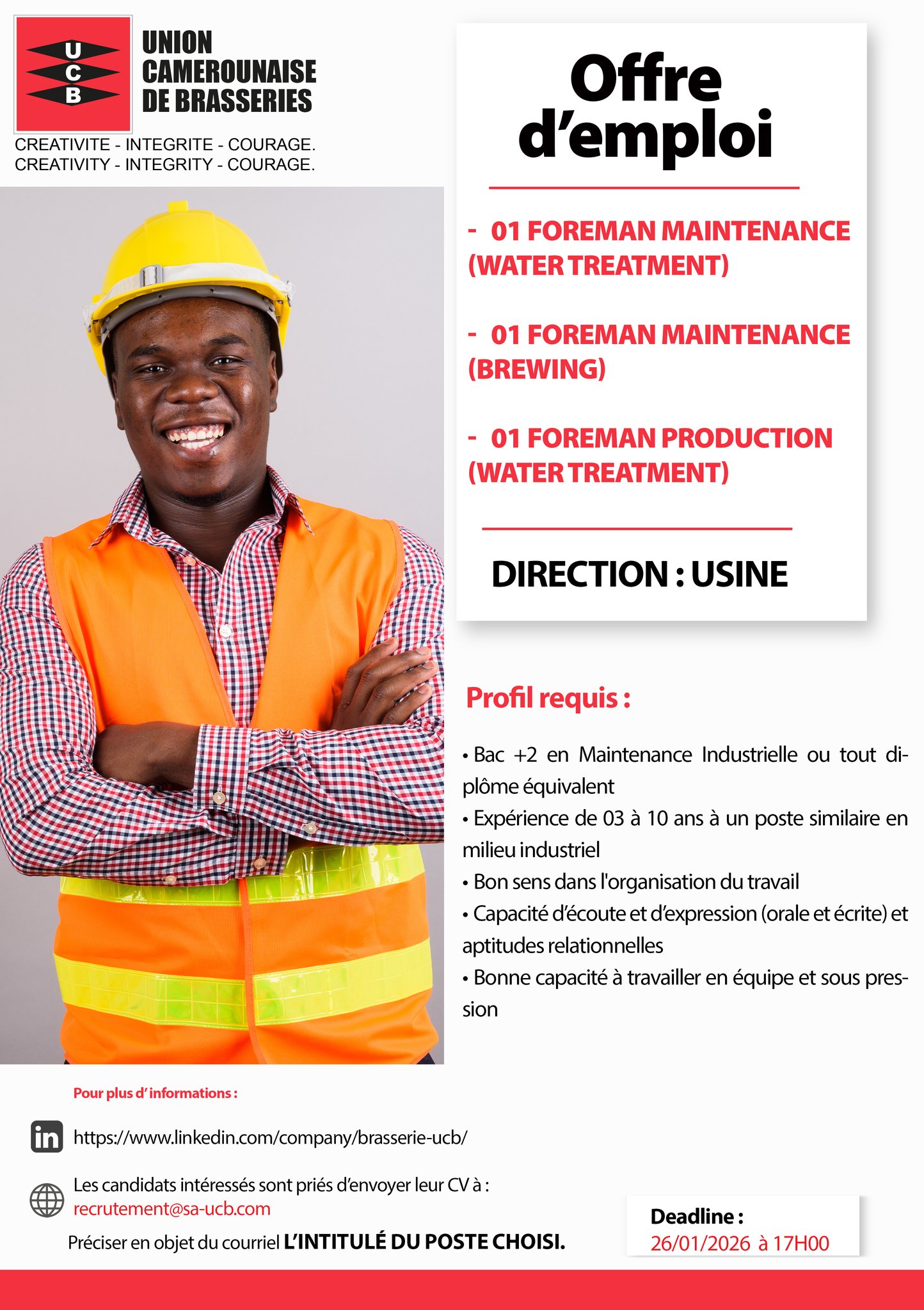 – Foreman Maintenance (Water Treatment) – 1 poste