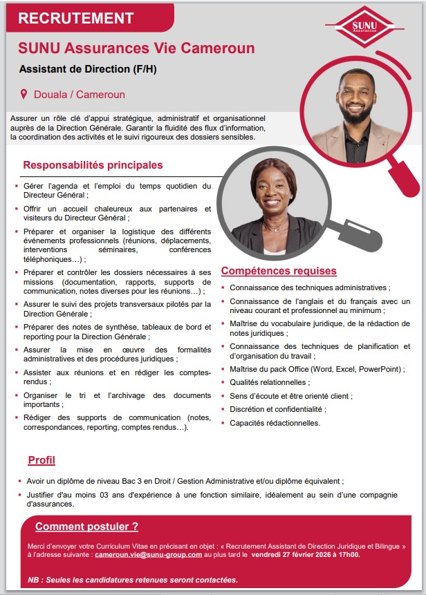 Poste 2 : Assistant (e) de Direction (F/H)