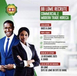 BB Lomé recrute un(e) Commercial(e) Modern Trade HORECA, basé(e) à Lomé.