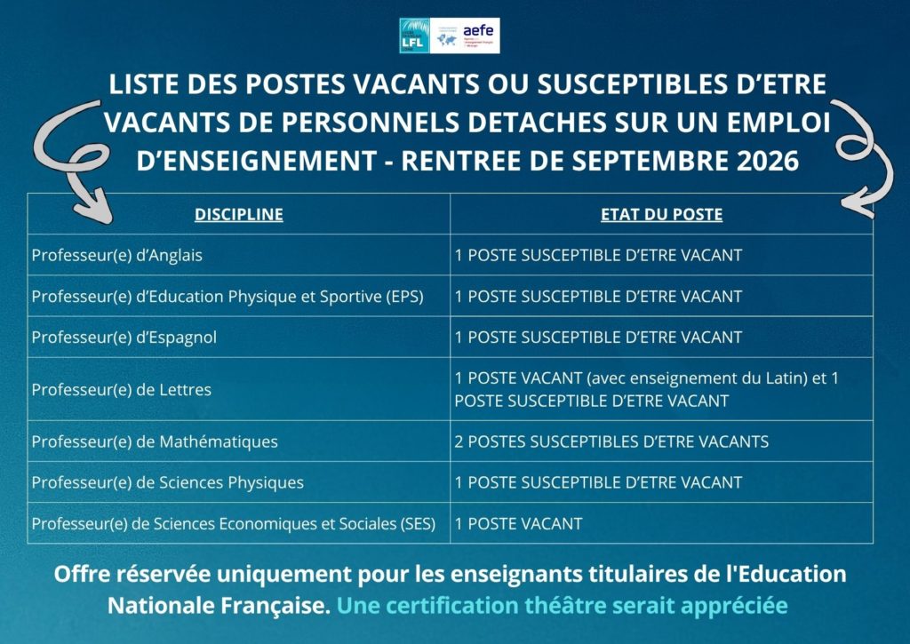 L’AEFE recrute pour le Lycée Français de Lomé des enseignants détachés sur des emplois d’enseignement pour la rentrée de septembre 2026.